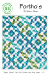 The Porthole PAPER quilt pattern includes five pages of step-by-step instructions and color images. Porthole has the option for 6 different quilt sizes. The sample on the cover finished at 50" x 60".