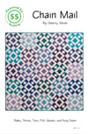 The Chain Mail PAPER quilt pattern includes six pages of step-by-step instructions and color images. Chain Mail has the option for 6 different sizes. The sample on the cover finished at 60" x 60".